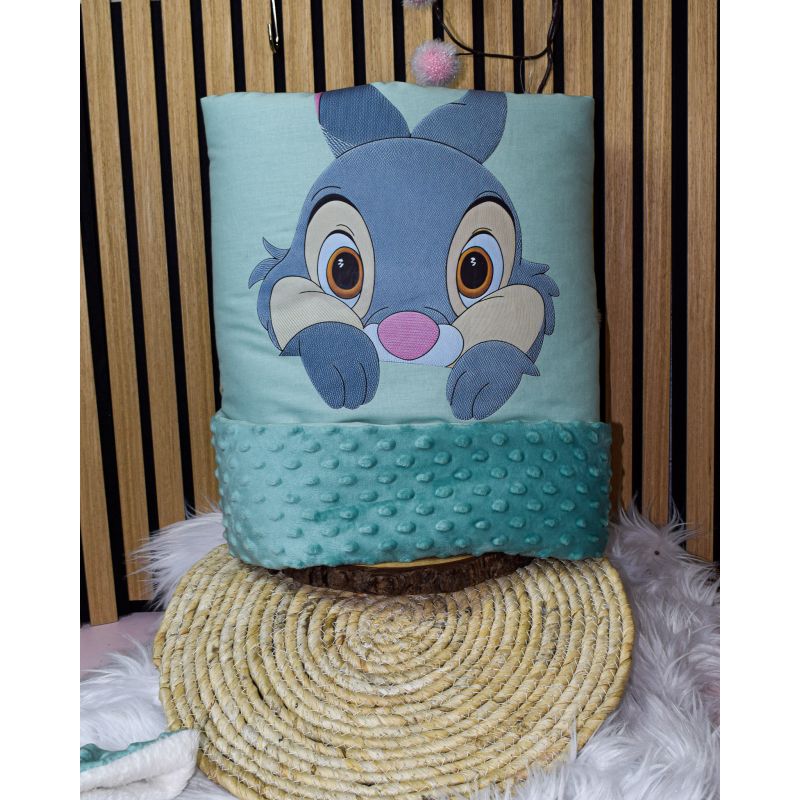 Elle se compose d'une face coton argumenté du dessin imprimé et brodée au prénom ou texte selon votre choix et la face intérieur en tissus doudou.
