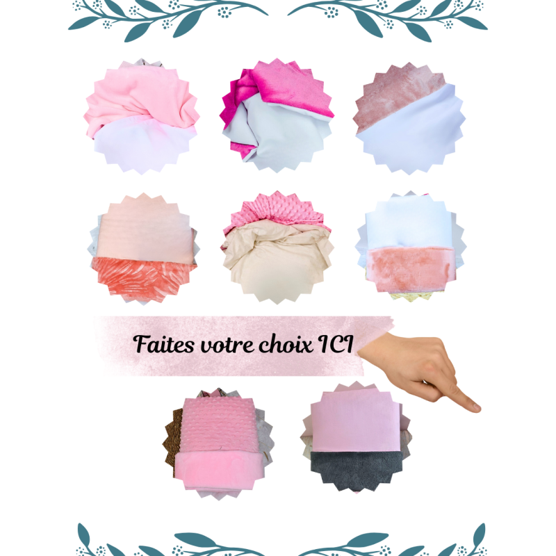 Vous avez le choix de plusieurs motifs et couleurs merci de l'indiquer lors de la personnalisation.